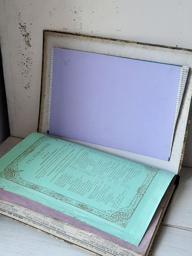 à l'intérieur, plusieurs buvards et 1 soufflet pour le courrier contre la dernière page cartonnée