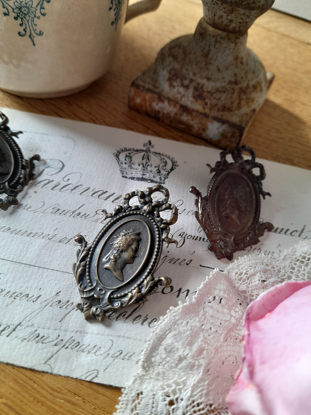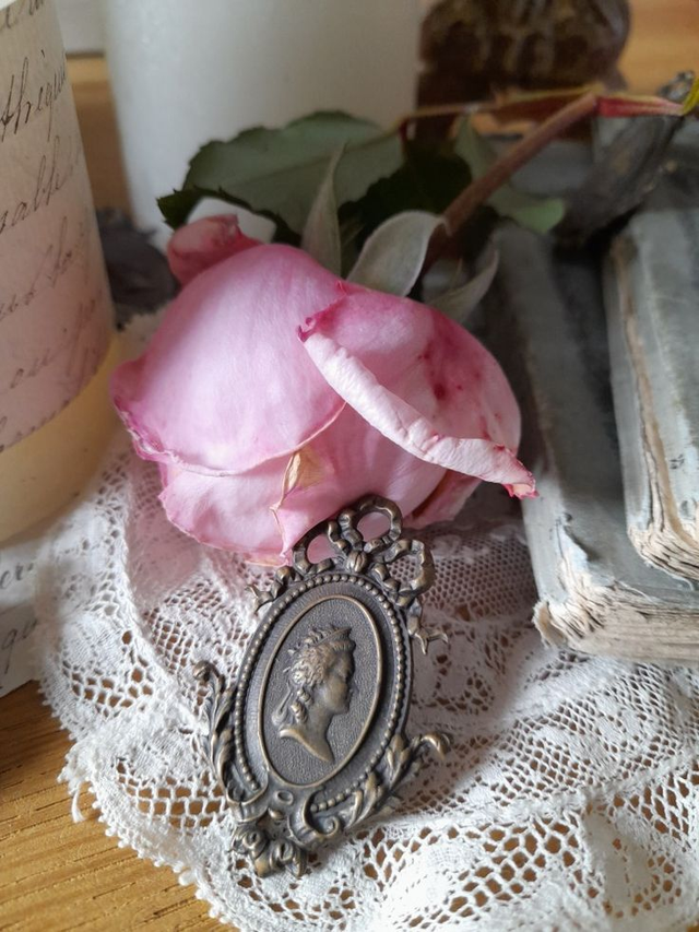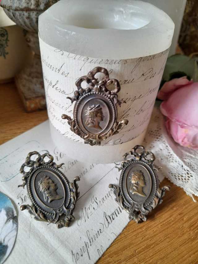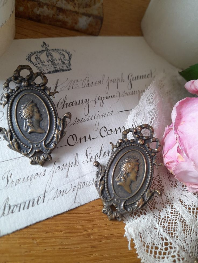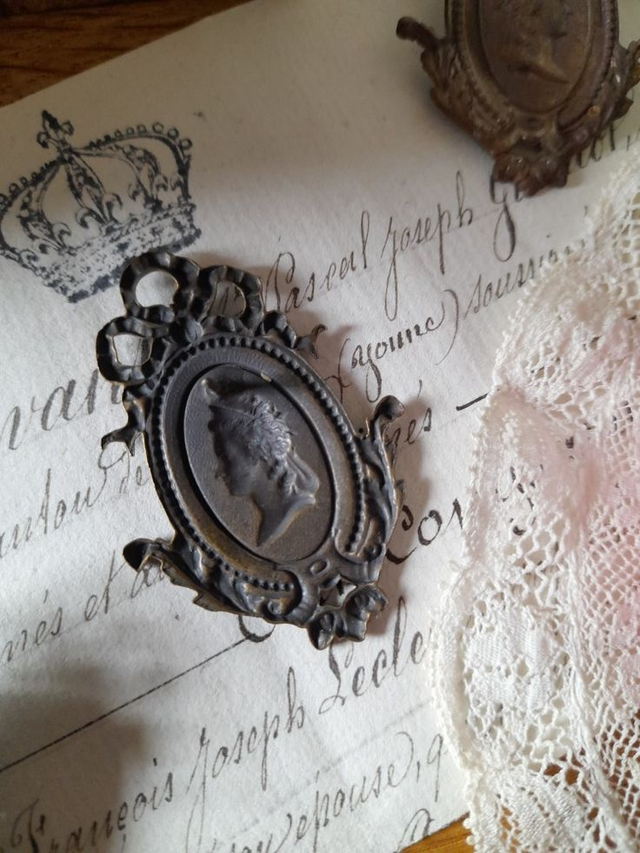 Ancienne insigne en métal repoussé à l'effigie de Marie-Antoinette