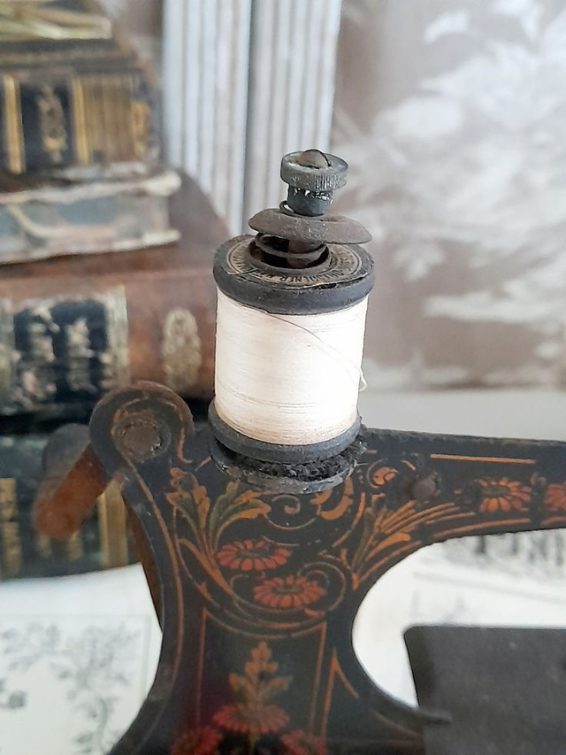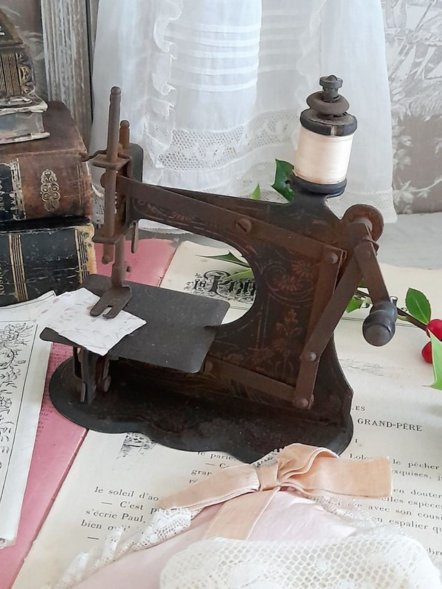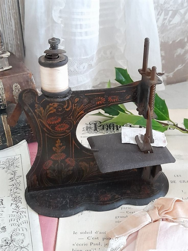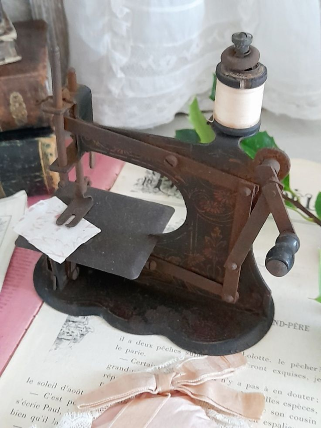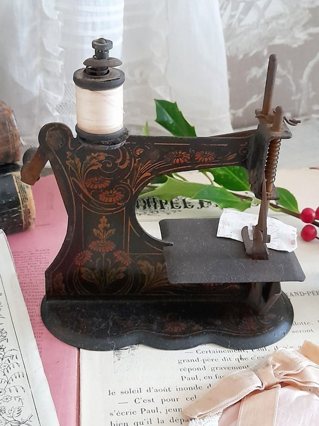 Charmante petite Machine à coudre ancienne. Joli Jouet d'imitation en tôle du début XXème