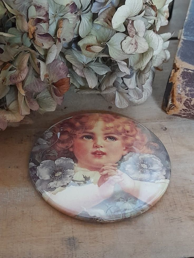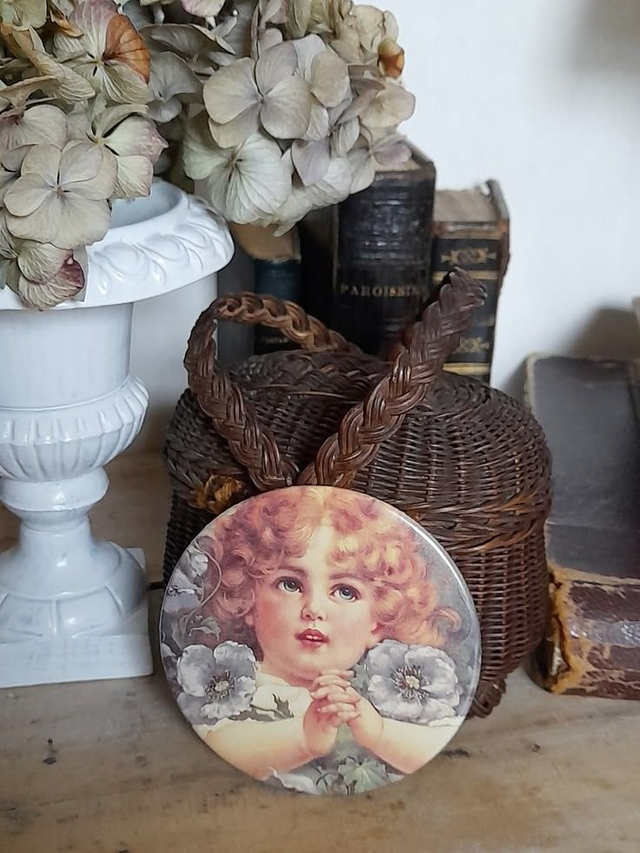 ravissant miroir de poche vintage avec illustration de jeune fille au charme délicieusement rétro