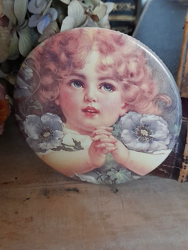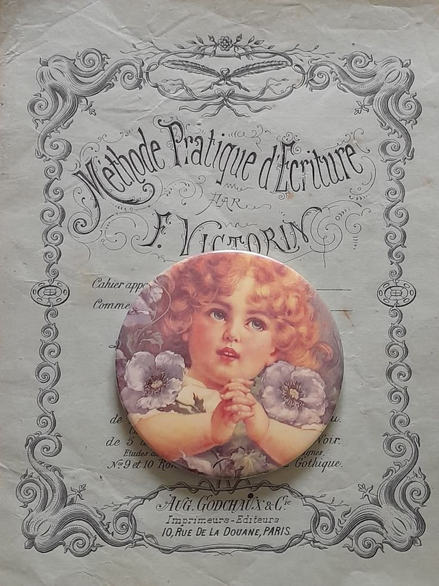 miroir de poche vintage, miroir sac, miroir rétro, glacoïd, rhodoïd, jeune fille illustrée, coquetterie, vanity, brocante chic, accessoire vintage