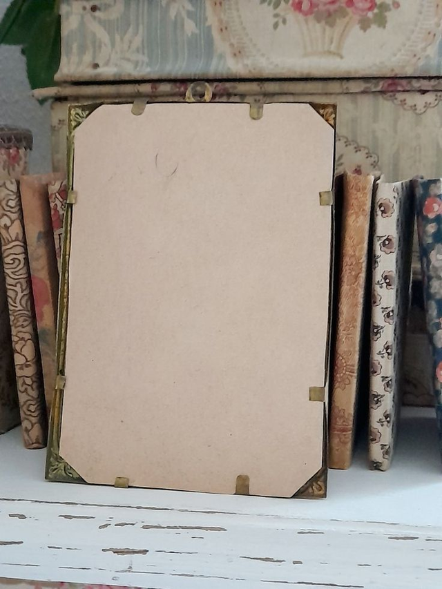 Charmant petit cadre ancien en laiton repoussé, décor travaillé sur le pourtour