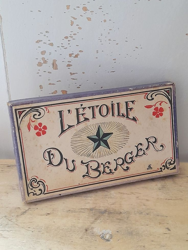 Authentique, la boîte en carton porte les traces du temps,