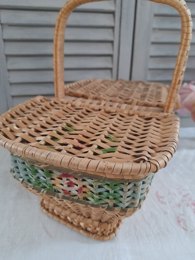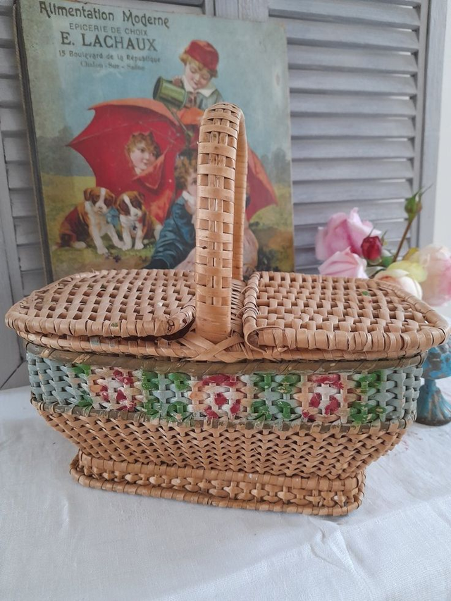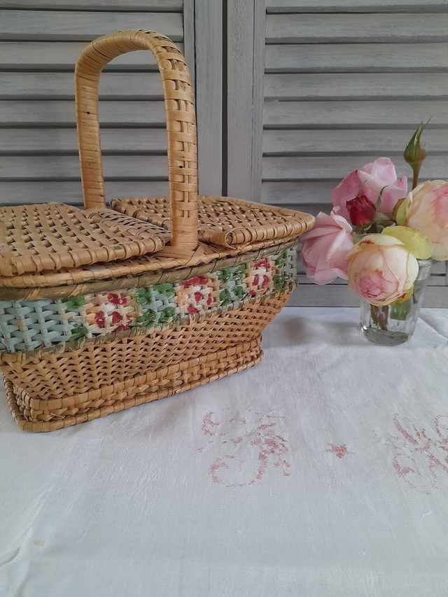 Avec couvercles de chaque côté et frise de roses peintes au pochoir